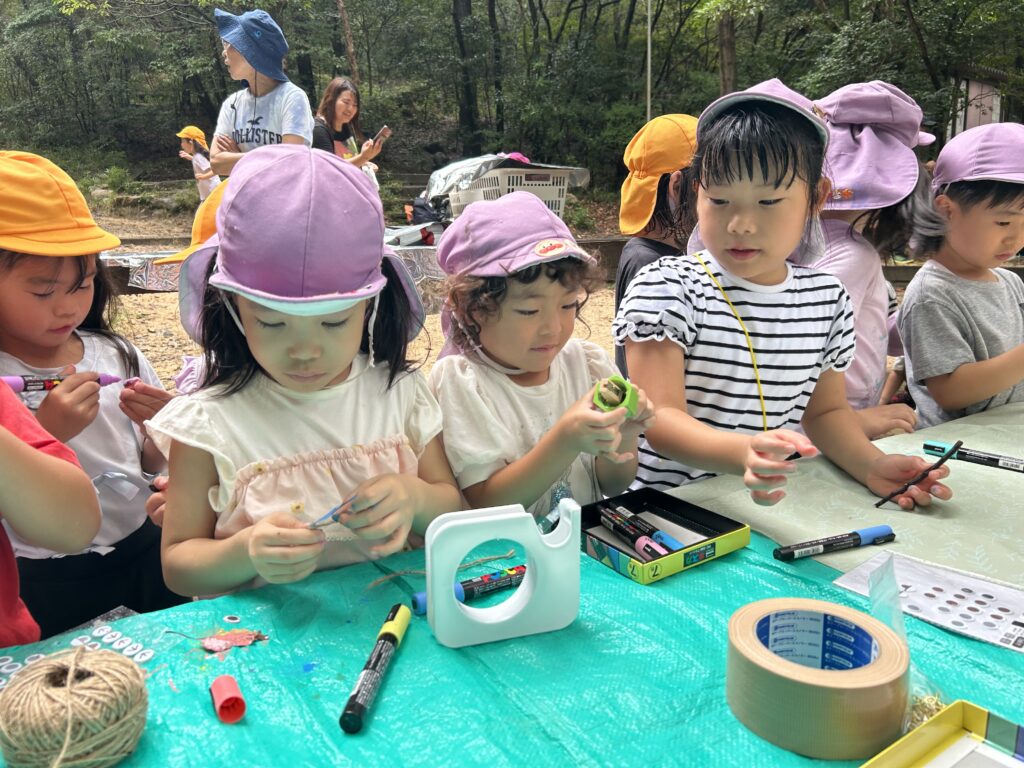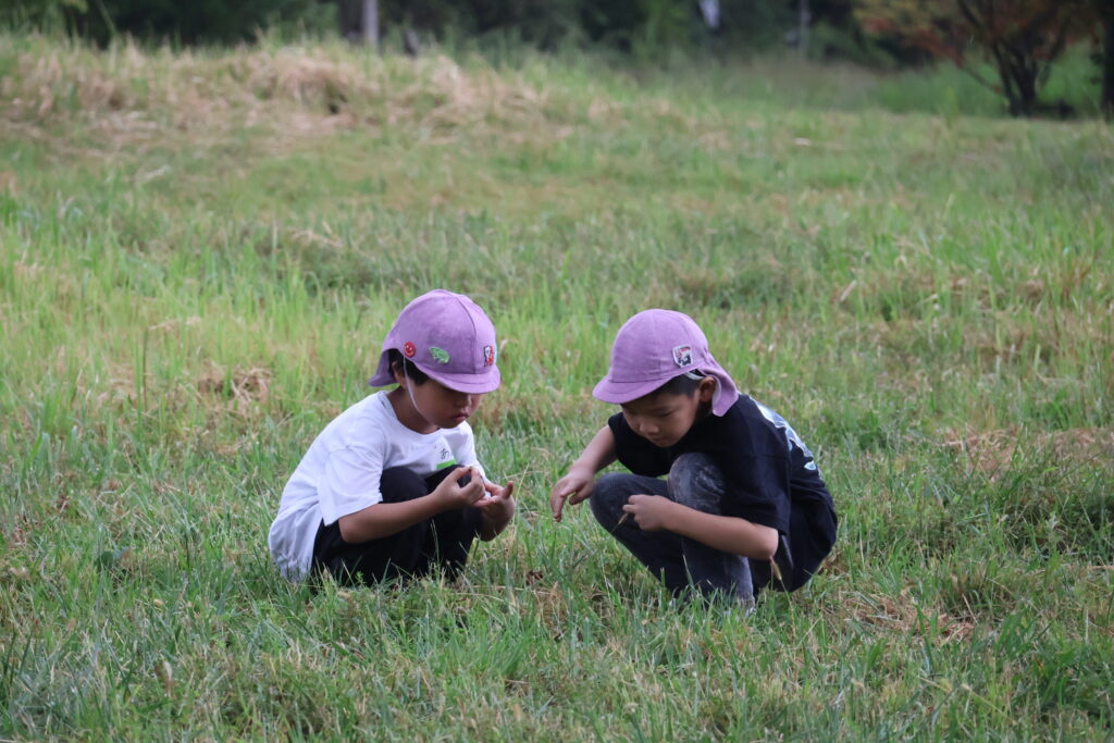 一日目は突然の雨に当たり、午前中のプログラムは少し変更となりましたが、午後からは晴れ間も広がり、たくさんの自然に触れ遊ぶことができました。