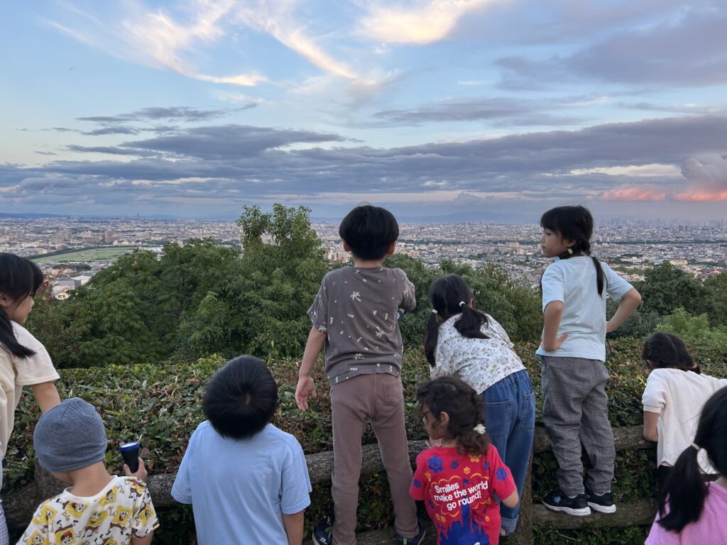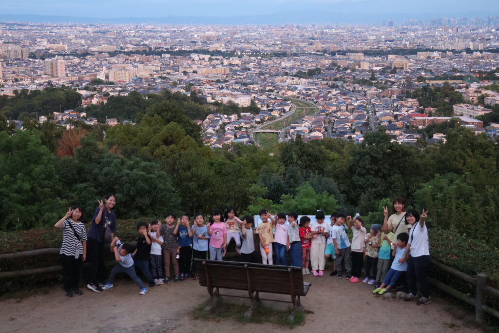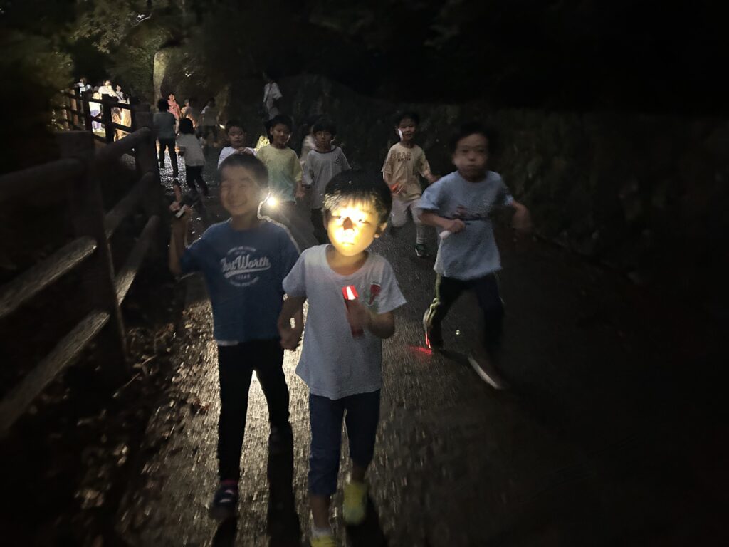 懐中電灯を持って、森林公園の展望台までナイトハイキング