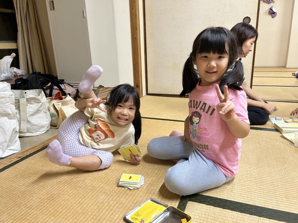 初めて会うお友達に初めは緊張気味でしたが、一緒にゲームをしたり、ご飯を食べる中で仲良くなり、帰るころには仲良く名前で呼び合うようになっていました。