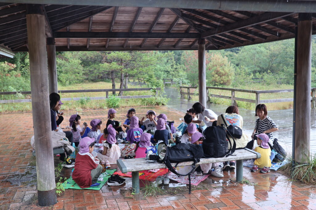 自然観察池で遊んでいるとと、雨が降ってきました☔