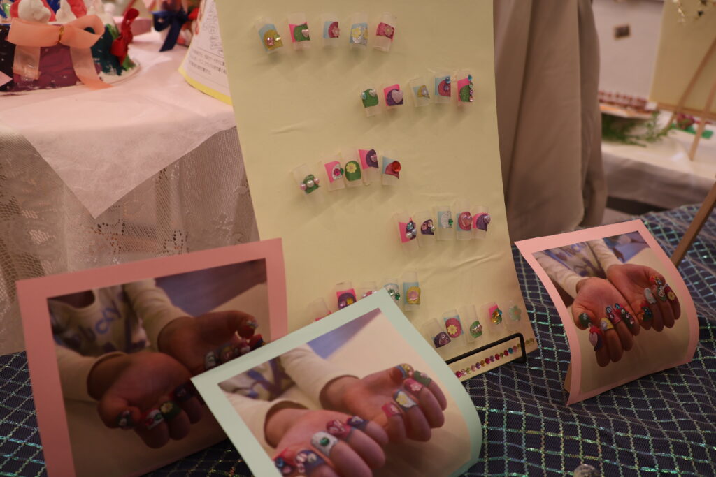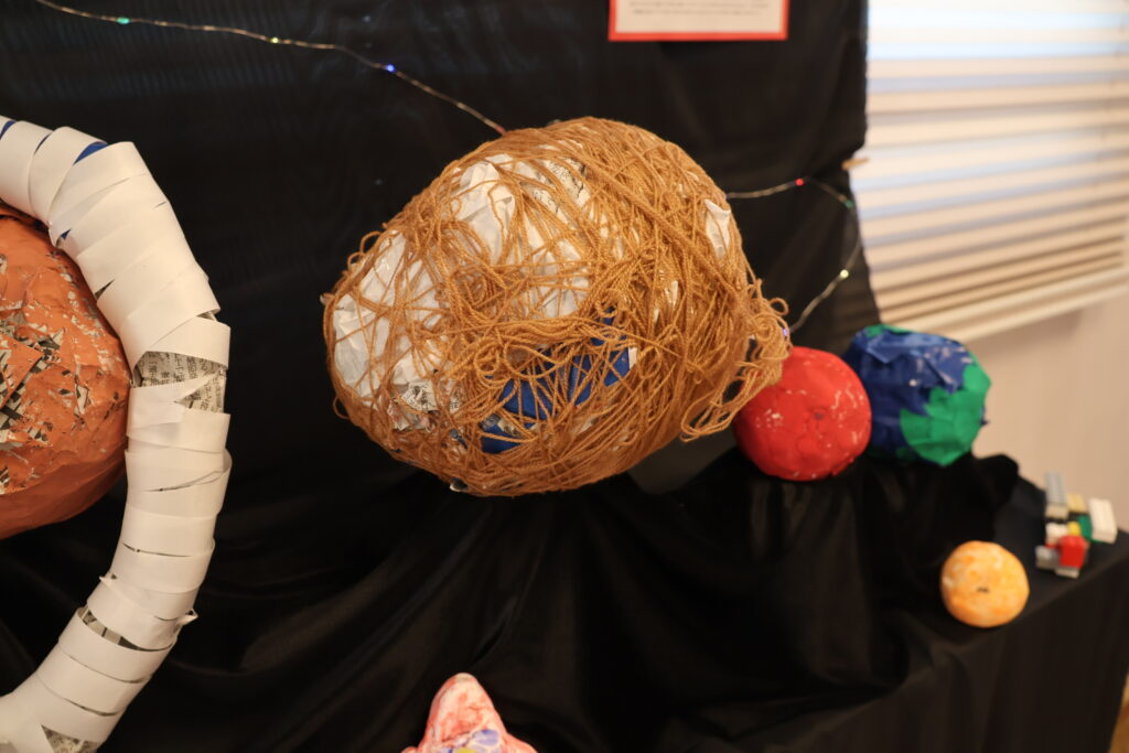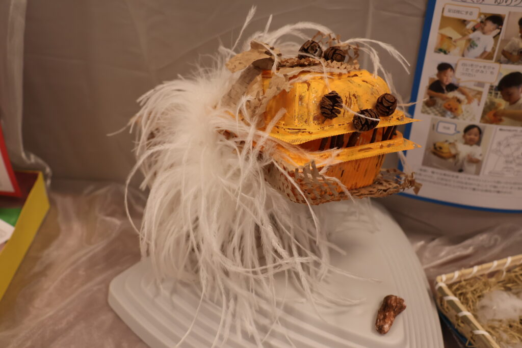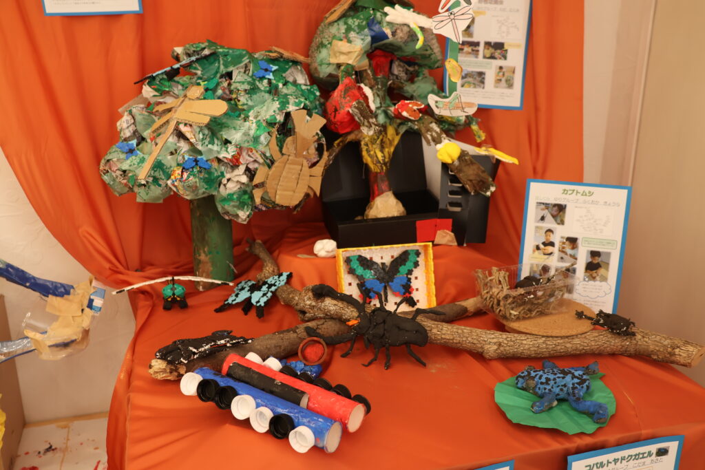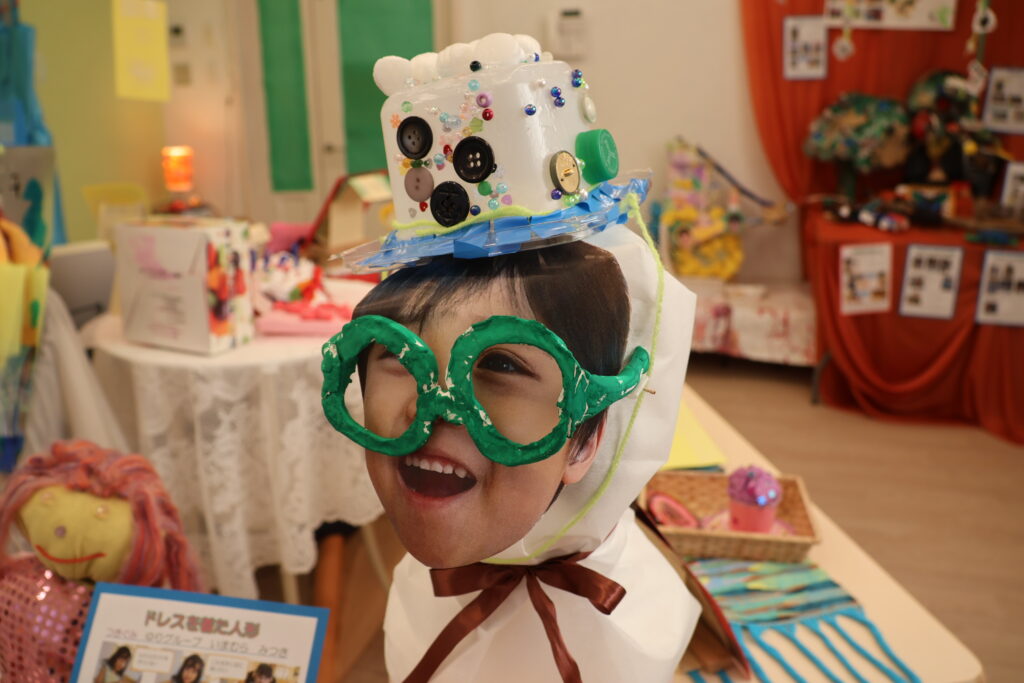 をテーマに、子どもたちは、自分で考え、試行錯誤し、自分だけの素敵な作品を作り上げました。作品の横には、一人ひとりの制作の様子の写真を貼り、制作過程をまとめたポートフォリオも一緒に展示しています。