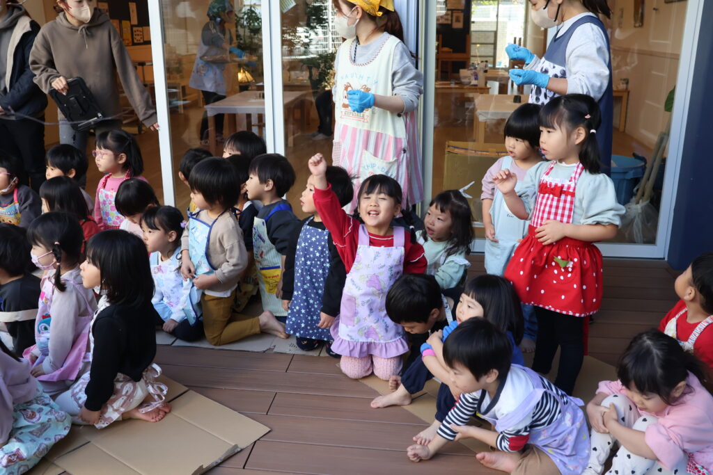「なに、なに~」赤ちゃん組さんも興味津々で見ていました。