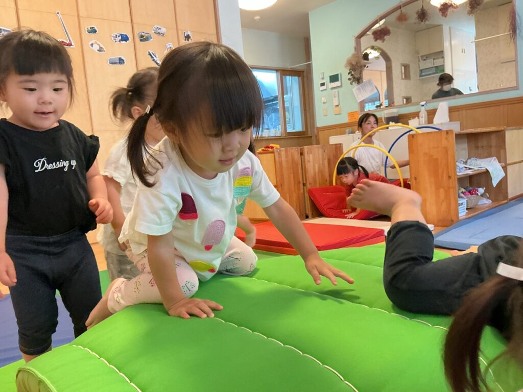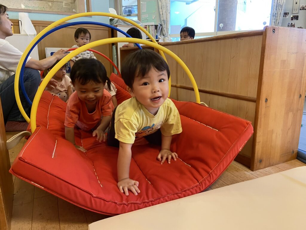 残暑が厳しい夏ですが子どもたちは毎日元気に室内遊びをしています。