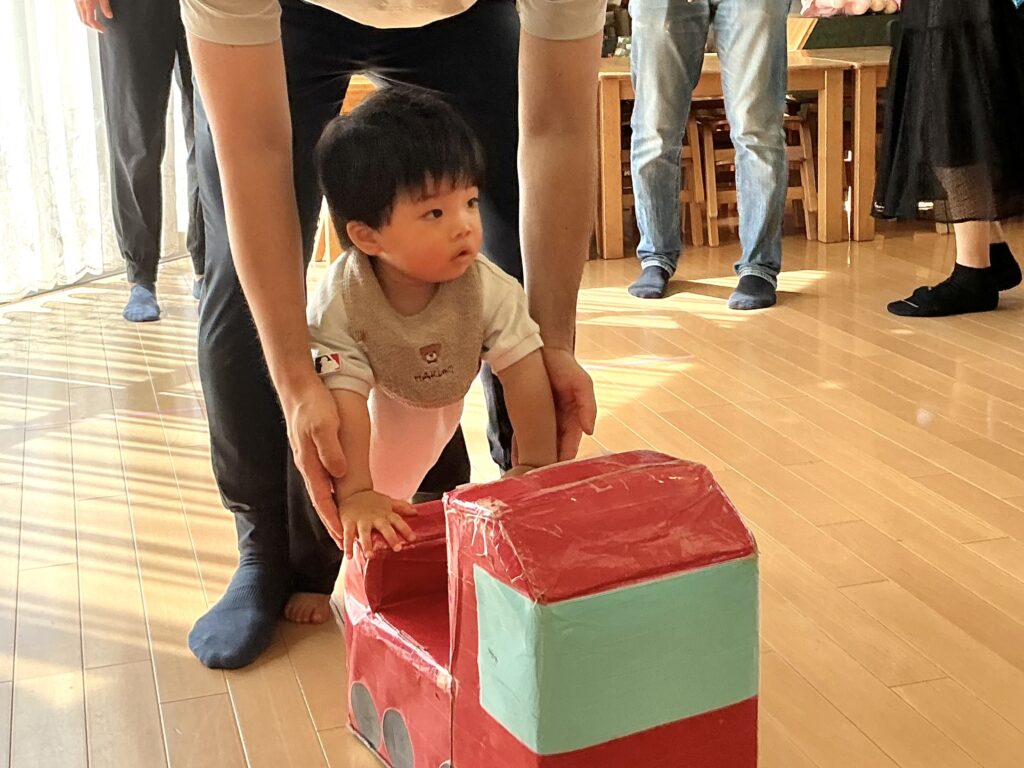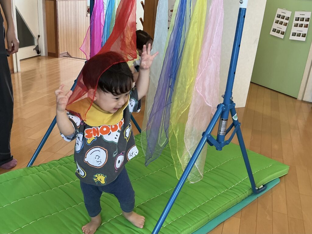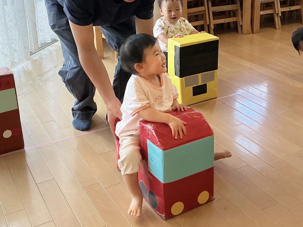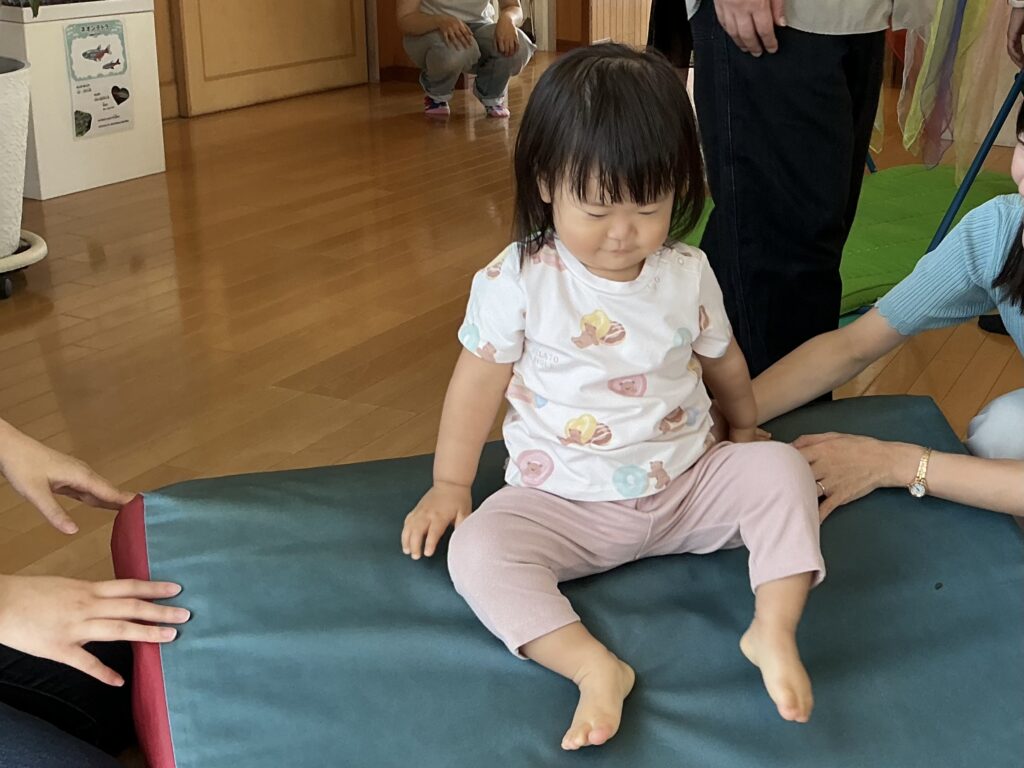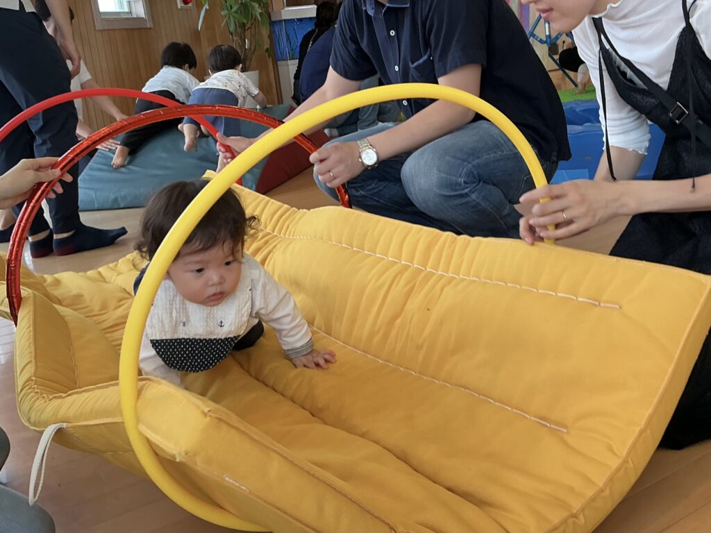 お父さんお母さんとお歌を歌ったりサーキット遊びをしたりしました。親子ダンスではたくさん抱っこをしてもらい、嬉しそうな子どもたちの姿が見られました。