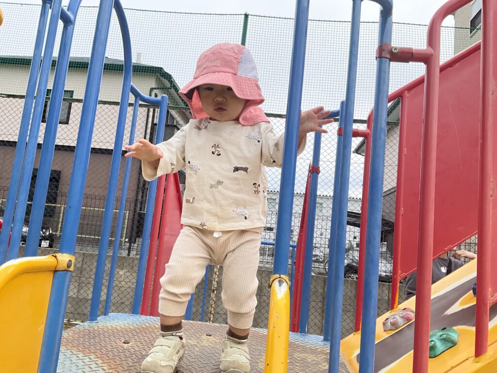 公園に着くと走って遊具までいく子どもたちは一生懸命階段を上って上を目指します。