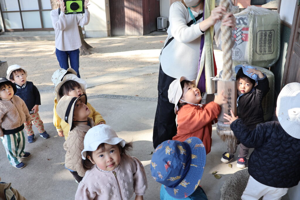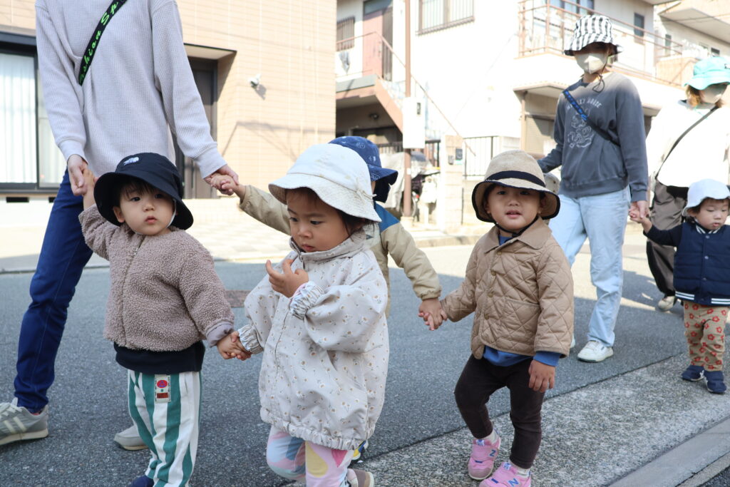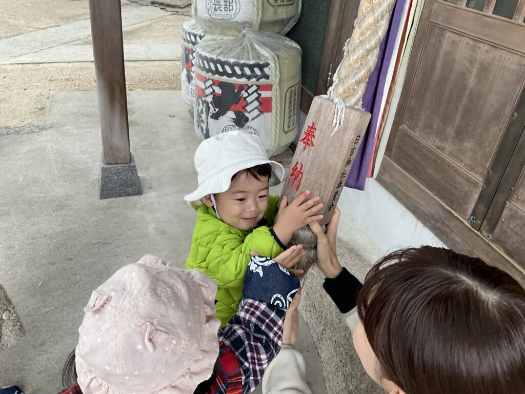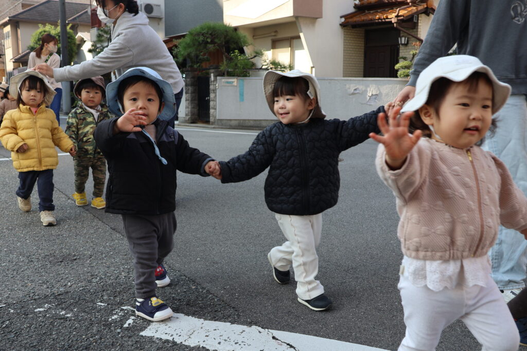 2025/11/18 七五三詣り(0.1歳児) 心地よい天気の中、七五三詣りをしに近くの神社まで行きました。 <1歳児>手を繋いで歩くのも上手になってきました。 <0歳児>みんなが元気で健やかに過ごせますように・・・