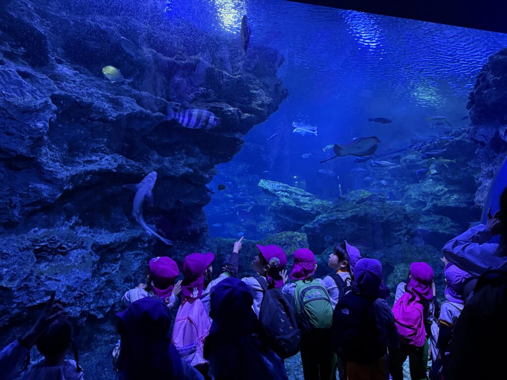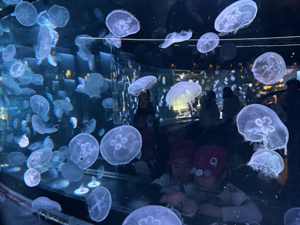 神秘的なクラゲやかわいいアザラシ、イルカのショーや初めて見る魚に興味深々でした。