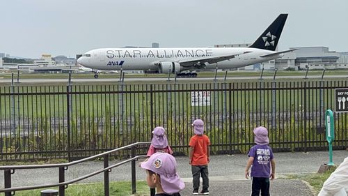 視界に入る飛行機の大きさが大きくなるにつれて「もう近いって事⁉」…子どもたちの楽しみにしている気持ちが伝わってきました。