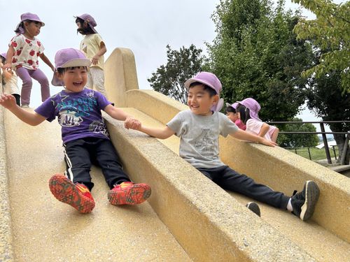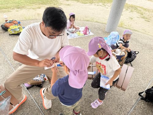 しばらくすると小雨がぽつぽつ… 「雨止みますように」みんなでお祈りです🌟
