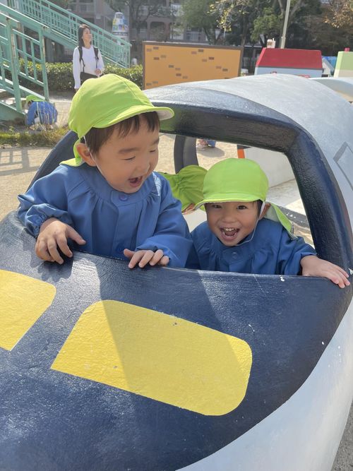 みんなでバスに乗って交通公園まで遠足に行ってきました。バスの車内では窓の外を流れる景色を口々に話したり、すれ違うバスやトラックに歓声をあげたり、保護者の方に作っていただいたおにぎりのことを話したりと子どもたちにとっては中身の濃い1時間です🚌